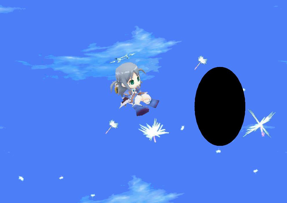 「なんでしょう?あの黒いのは・・・・あら?・・・あらあらあら???吸い込まれる~~~~~(×△×)」
